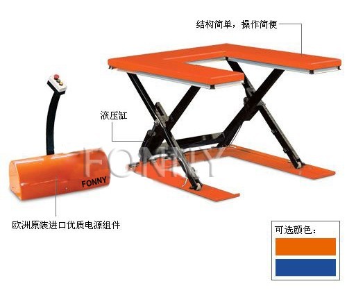 • U型臺面,重型設計帶超長臺面,專用于托盤搬運,超低型臺面,不再需要建地下凹坑來安裝;