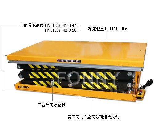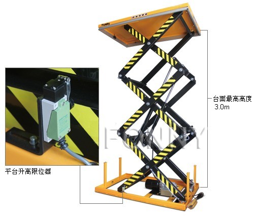 • 臺面下方配有安全檔條裝置,當臺面下降遇到障礙物停止下降,確保安全;