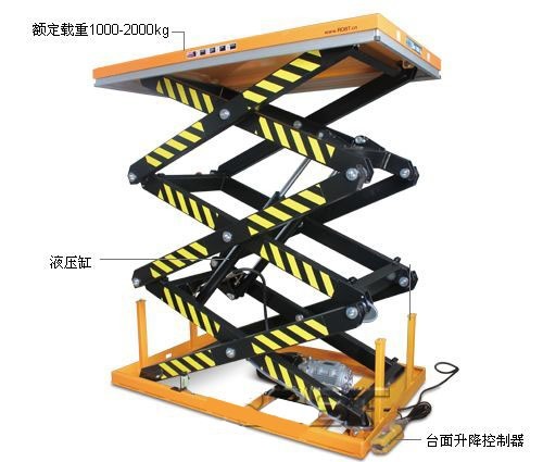 • 內部電源組配置有安全閥及補償流量開關,安全閥可以防止超負荷運作,補償流量開關可以控制低速,液壓系統帶防爆閥壓當油管爆裂時,可防止平臺急速下降;