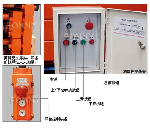 • 平臺升降剪叉部分采用寬截面錳鋼矩形管,使得運行更加平穩、可靠;