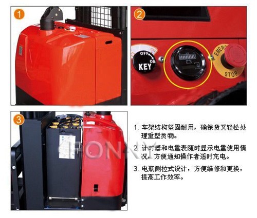 • 最新的交流控制器,質量可靠,性能優異,具有再生制動、反向制動及多種參數可調功能,可使整車的運動性能達到不同作業狀態下的最佳狀態。
