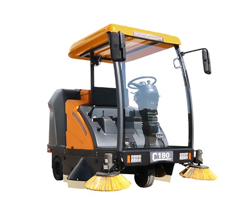 C180是一款集掃吸一體化的大型半封閉式駕駛式掃地車,強勁的雙吸塵系統、另配大容量滾塑水箱噴淋降塵系統,細小灰塵不再二次揚塵,可掃大到飲料瓶、煙盒,小到樹葉、石子、煙頭等垃圾,機器所到之處一干二凈。