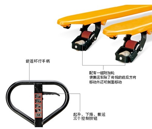 • 配有一組附加輪使搬運車除了傳統的前后方向移動外還可側面移動