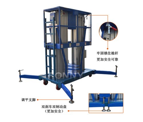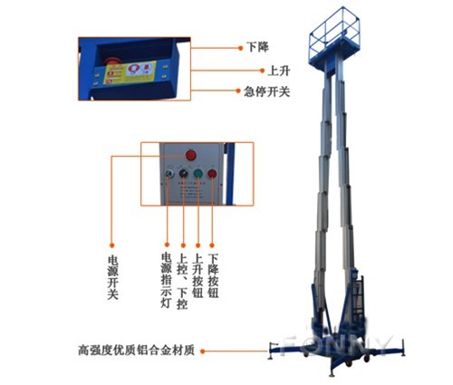 • 緊急下降系統:在斷電或其他故障時,可以啟有緊急下降開關,降下平臺;